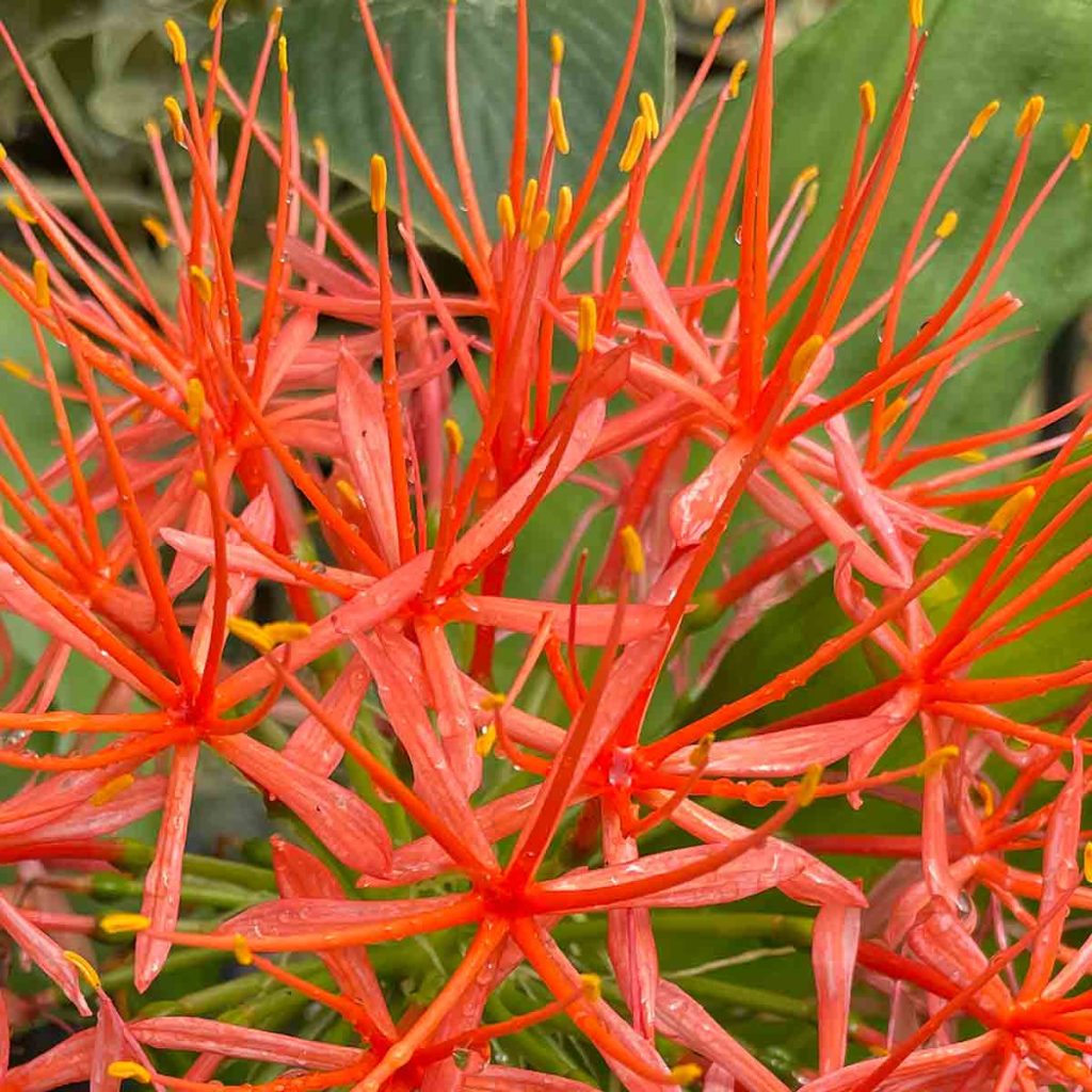 With its large rounded umbel made up of 100s of small flowers Scadoxus multiflorus ssp katharinae is a standout in the garden or in a container.